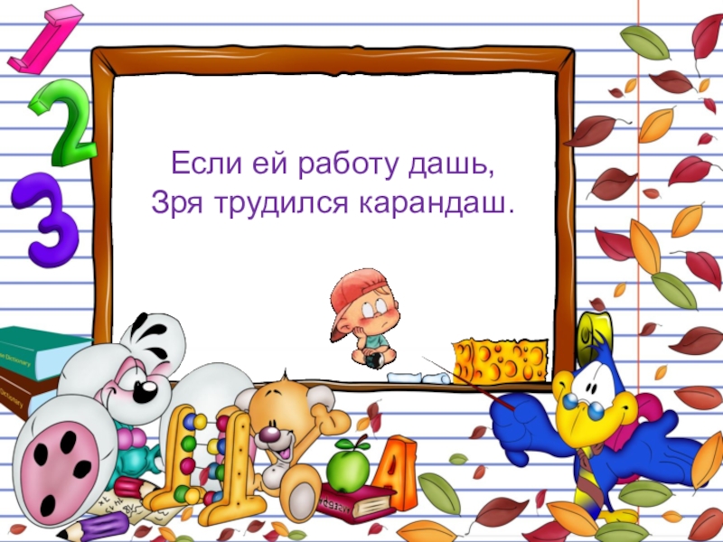 Если ей работу дашь,Зря трудился карандаш.