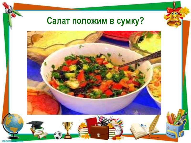 Слайд 17Салат положим в сумку?