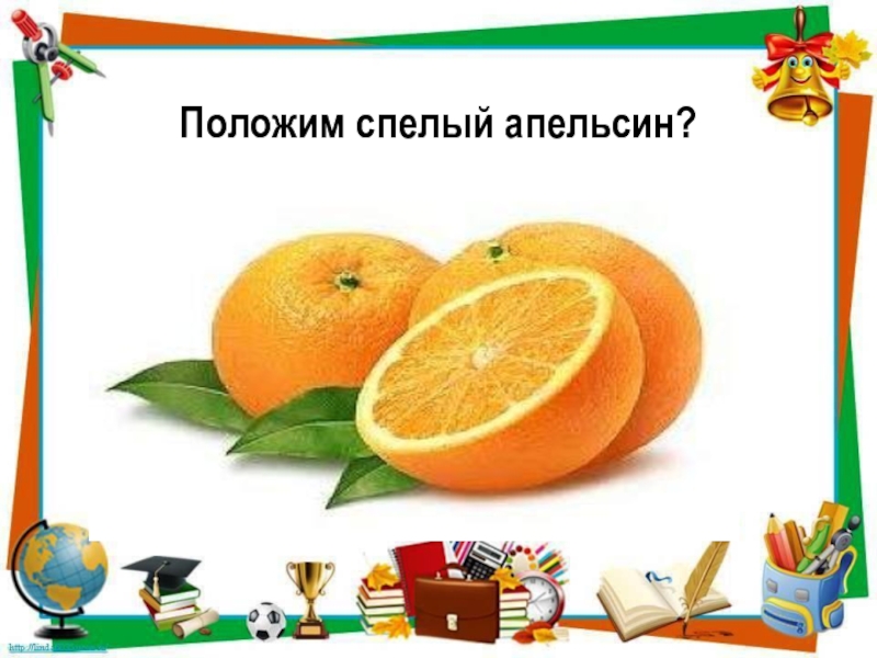 Слайд 13Положим спелый апельсин?