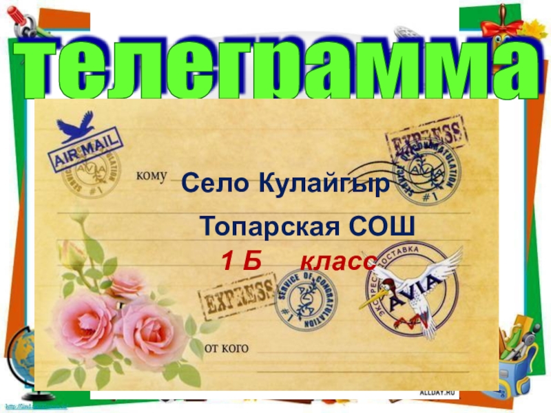 телеграмма Ждем в гости.Село КулайгырТопарская СОШ1 Б   класс