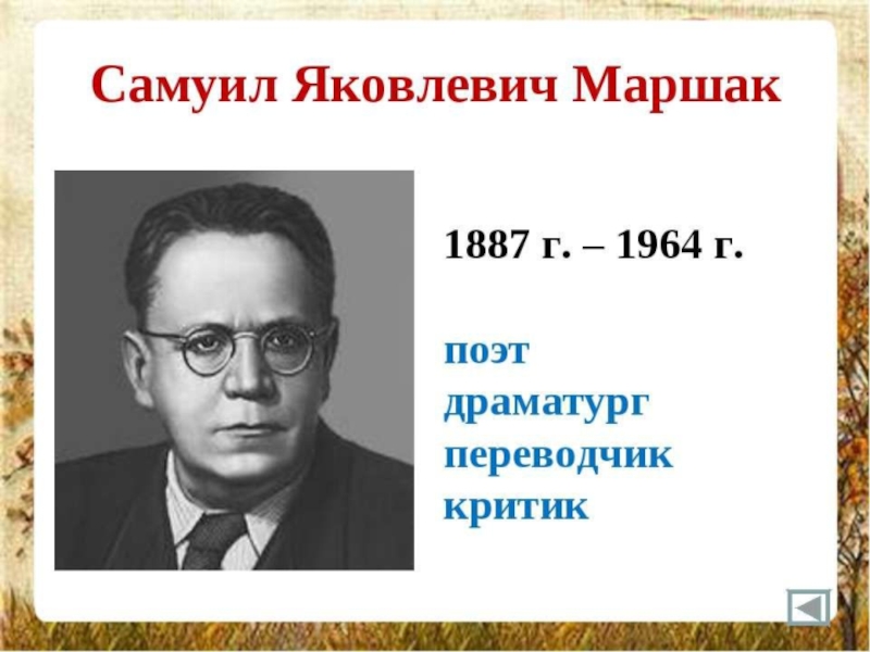 Презентация, доклад к 130-летию со дня рождения С.Я.Маршака