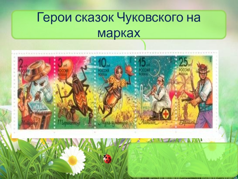 Слайд 8Герои сказок Чуковского на марках