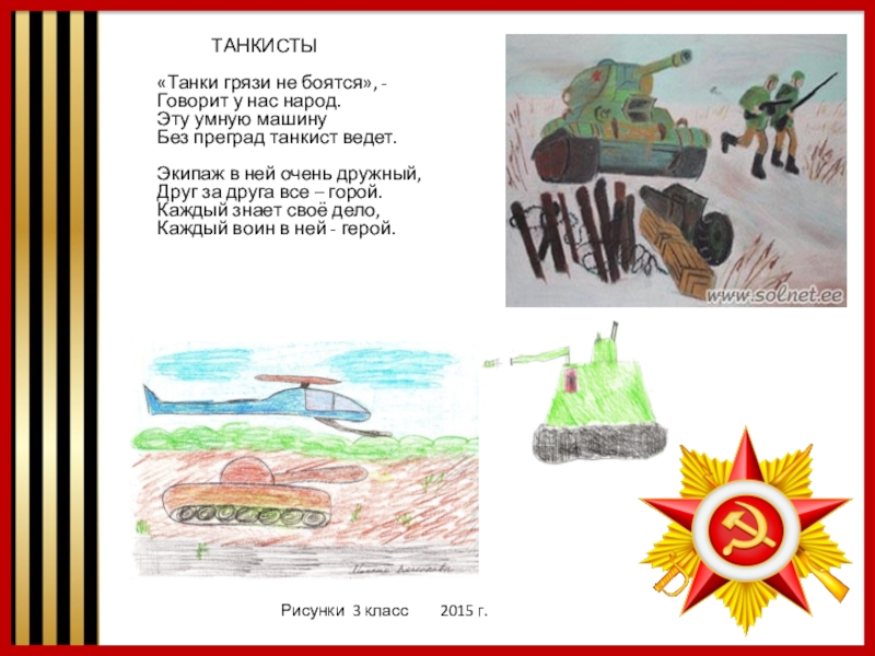 Шлют они от всей страны благодарность воинам, Что живём мы без войны, мирно и спокойно.