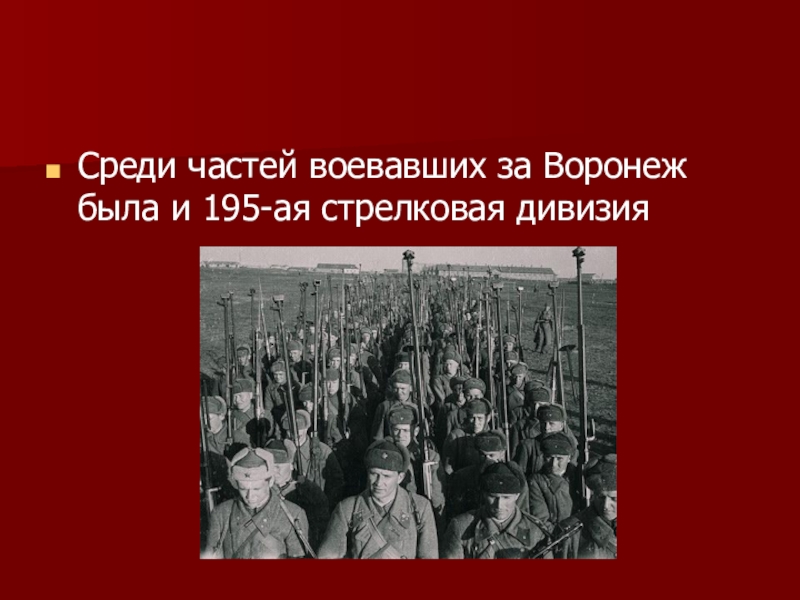 Среди частей воевавших за Воронеж была и 195-ая стрелковая дивизия