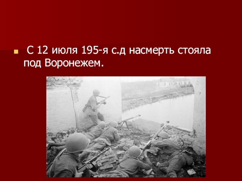 С 12 июля 195-я с.д насмерть стояла под Воронежем.