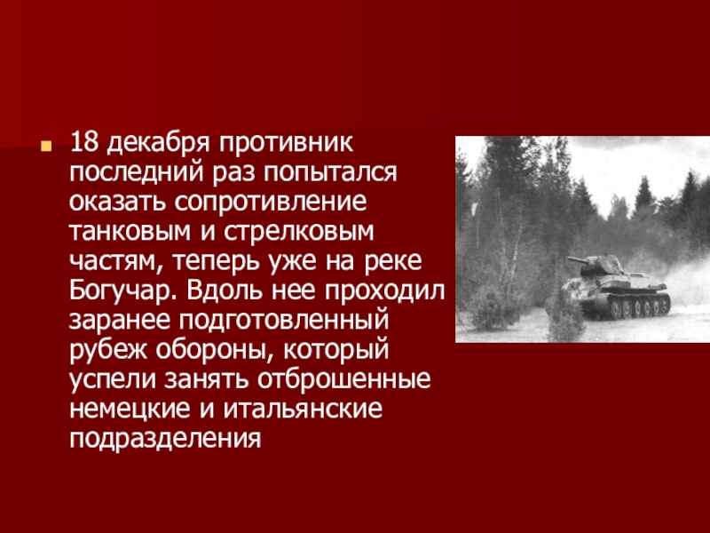 18 декабря противник последний раз попытался оказать сопротивление танковым и стрелковым