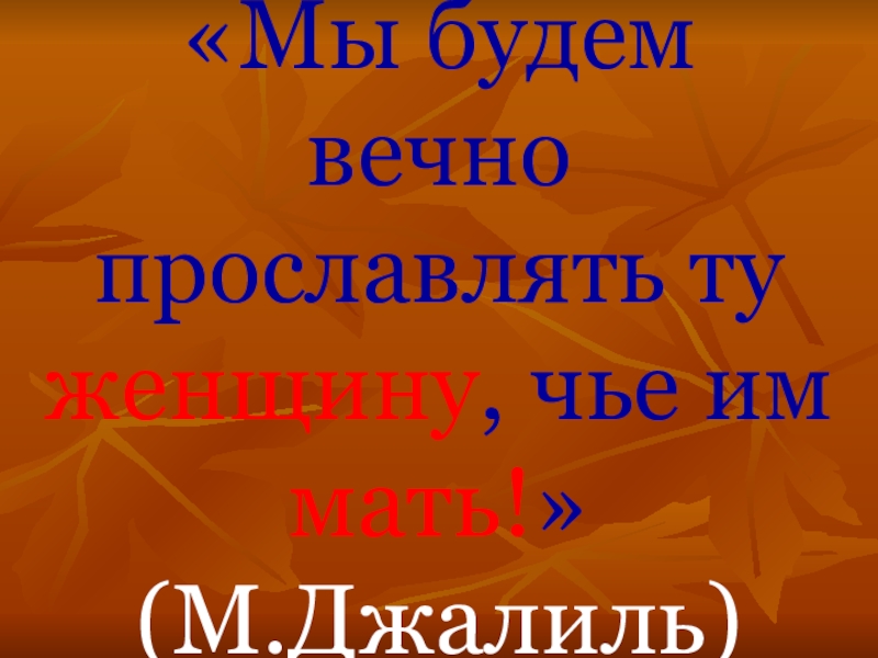 Слайд 4«Мы будем вечно прославлять ту женщину, чье им мать!» (М.Джалиль)