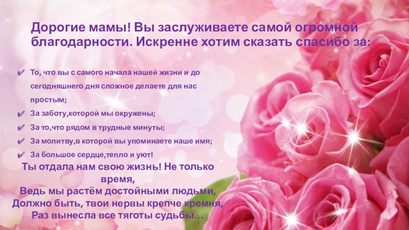То, что вы с самого начала нашей жизни и до сегодняшнего дня сложное делаете для нас простым;