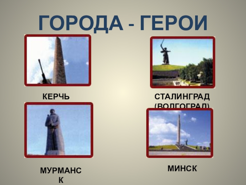 ГОРОДА - ГЕРОИКЕРЧЬСТАЛИНГРАД (ВОЛГОГРАД)МУРМАНСКМИНСК