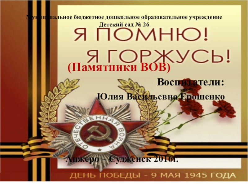 Презентация, доклад к 9 мая Я помню, я горжусь (Памятники ВОВ) г. Анжеро - Судженска