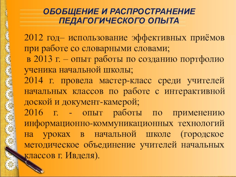 ОБОБЩЕНИЕ И РАСПРОСТРАНЕНИЕ ПЕДАГОГИЧЕСКОГО ОПЫТА