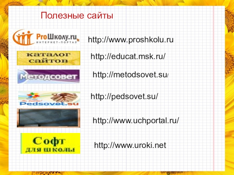 Это сайт презентаций, где можно хранить и обмениваться своими презентациями, докладами, проектами, шаблонами в формате PowerPoint с другими пользователями. Мы помогаем школьникам, студентам, учителям, преподавателям хранить и обмениваться учебными материалами.