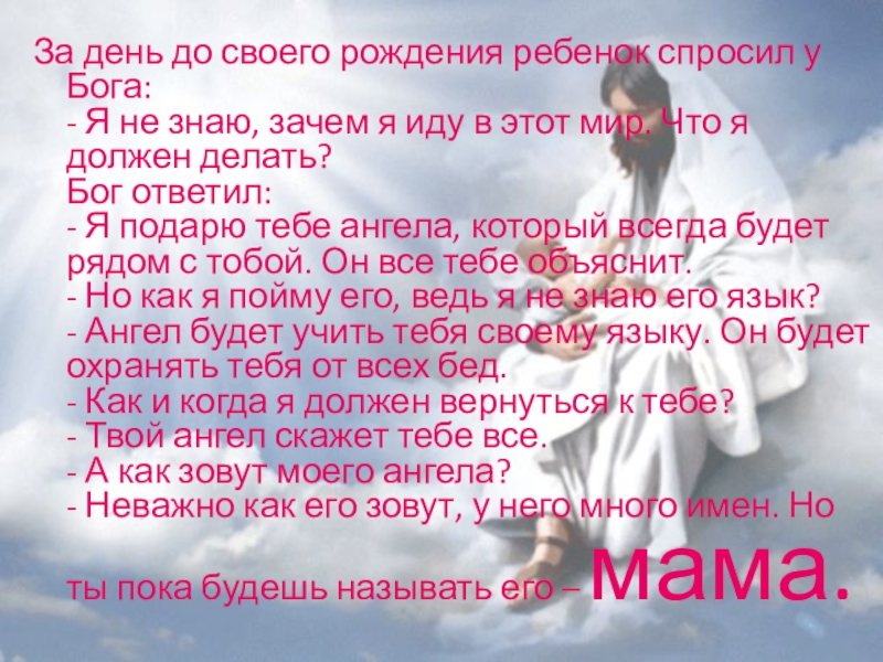 Слайд 2За день до своего рождения ребенок спросил у Бога: