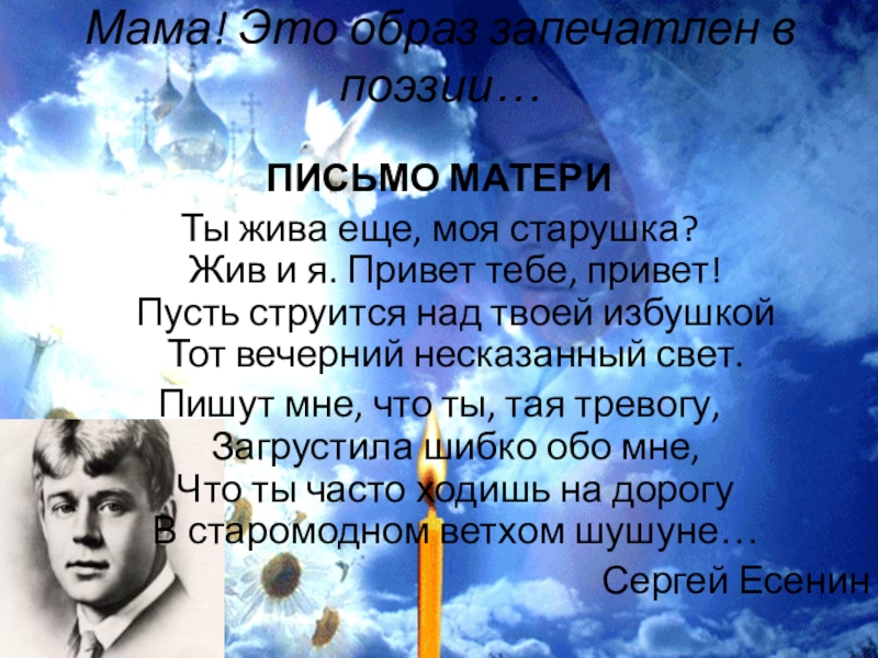 Слайд 13Мама! Это образ запечатлен в поэзии…