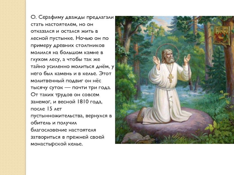 Слайд 11О. Серафиму дважды предлагали стать настоятелем, но он отказался и остался