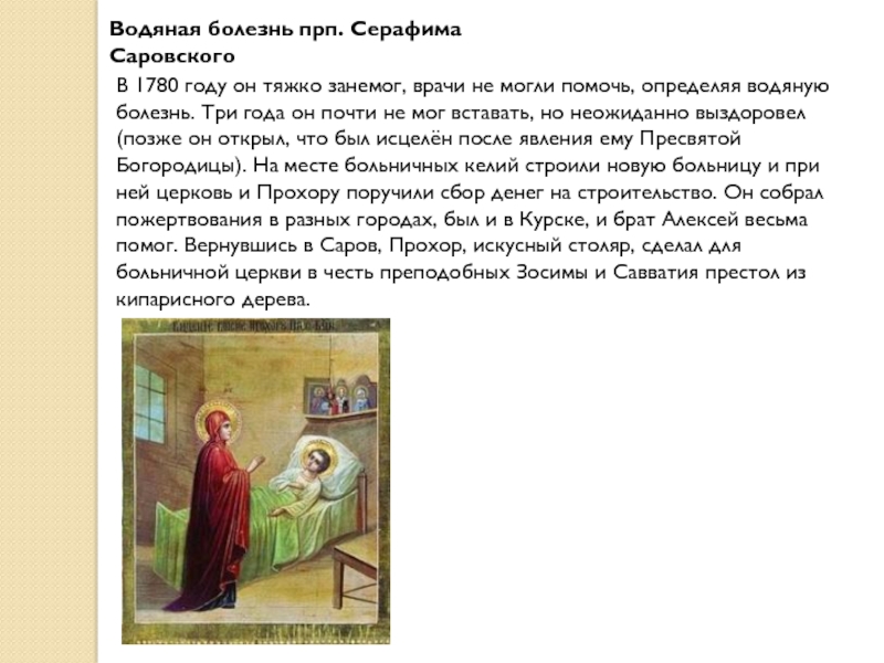 Слайд 6Водяная болезнь прп. Серафима Саровского