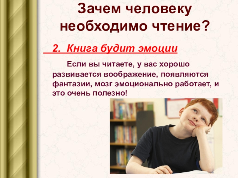 Если вы читаете, у вас хорошо развивается воображение, появляются фантазии, мозг эмоционально работает, и это очень полезно!