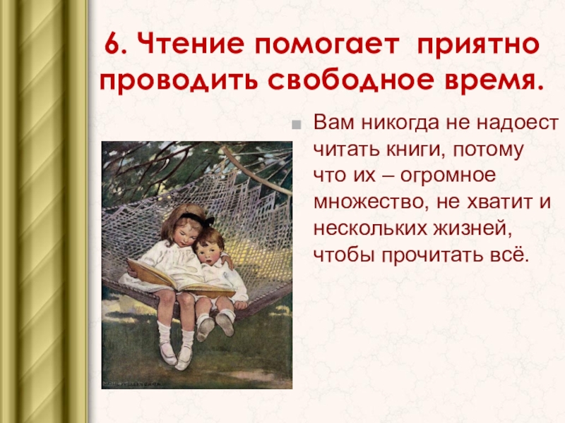 Слайд 106. Чтение помогает приятно проводить свободное время.