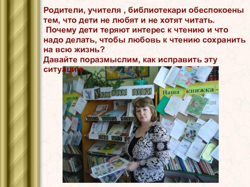 Слайд 2Родители, учителя , библиотекари обеспокоены тем, что дети не любят и