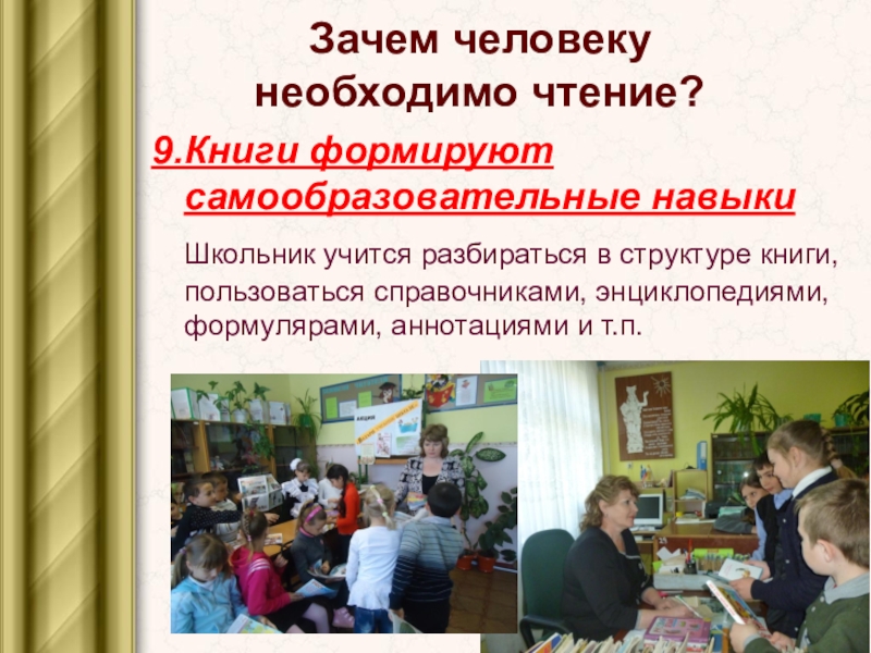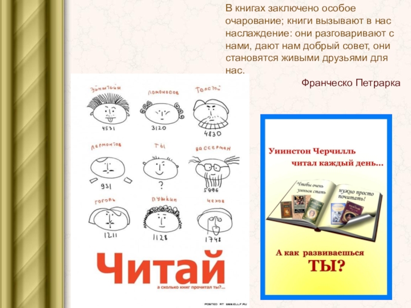 Слайд 20В книгах заключено особое очарование; книги вызывают в нас наслаждение: они