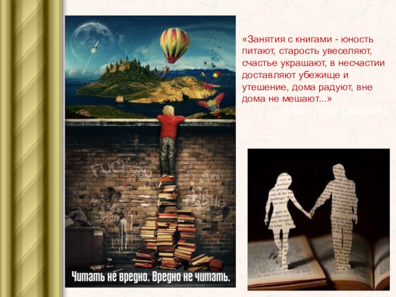 Слайд 25«Занятия с книгами - юность питают, старость увеселяют, счастье украшают, в