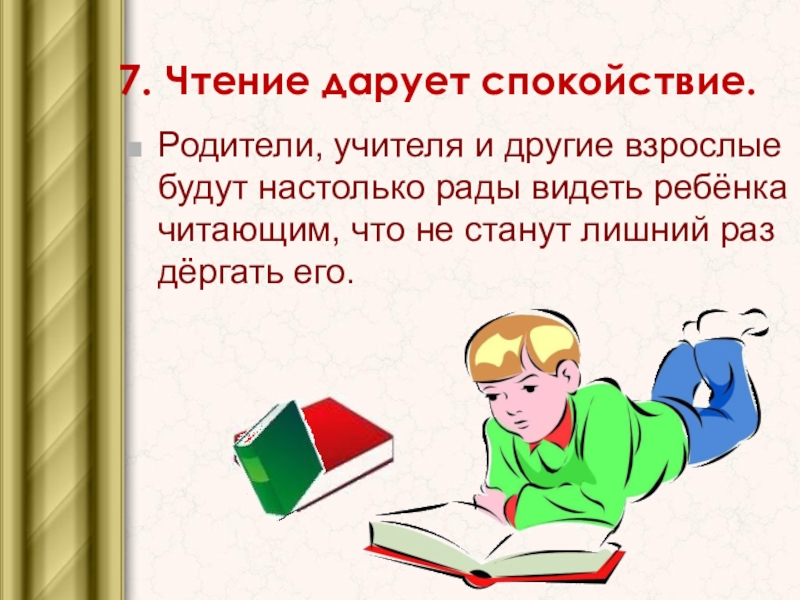 видеть ребёнка читающим, что не станут лишний раз дёргать его.
