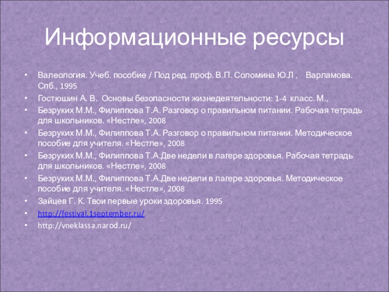 Безруких М.М., Филиппова Т.А.Две недели в лагере здоровья. Методическое пособие для учителя. «Нестле», 2008