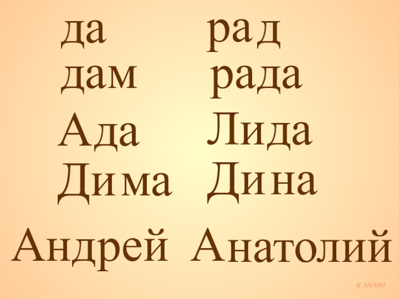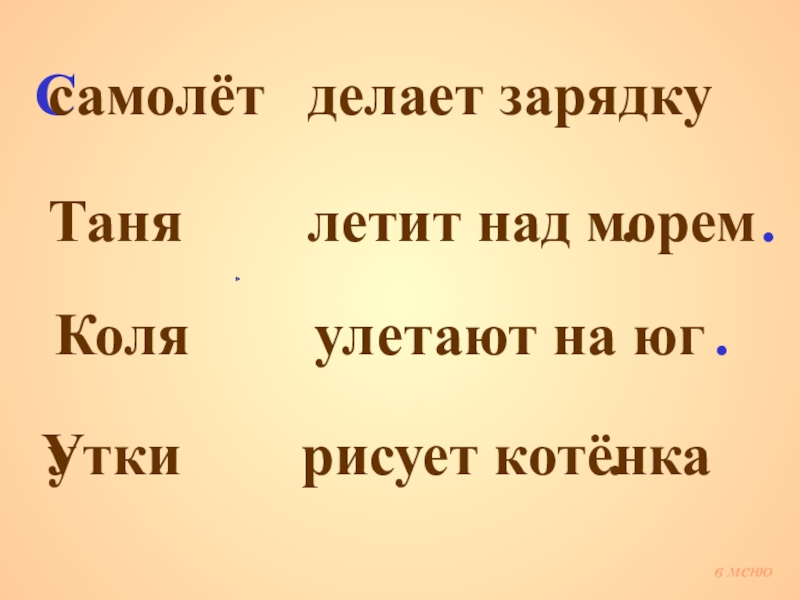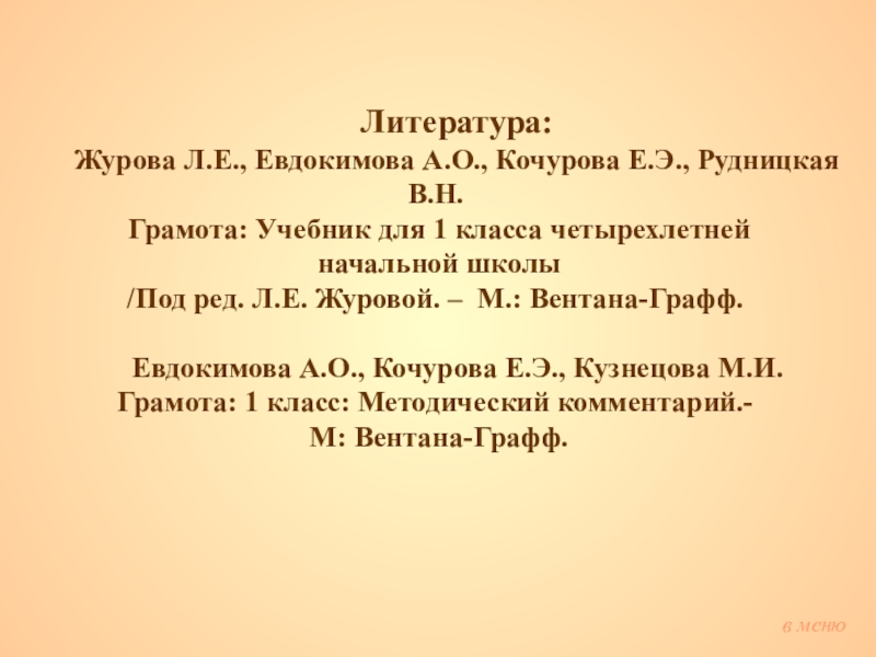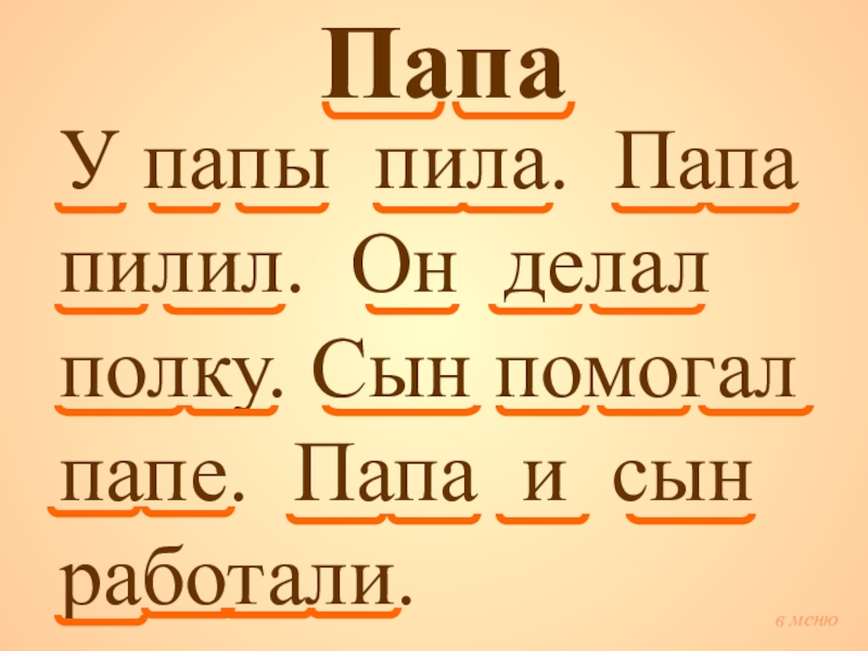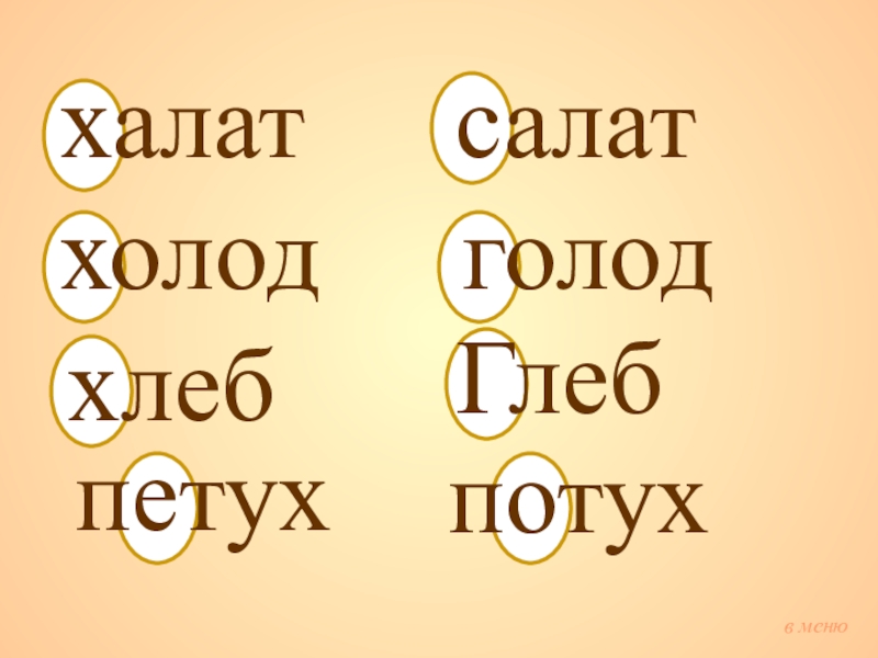 в меню