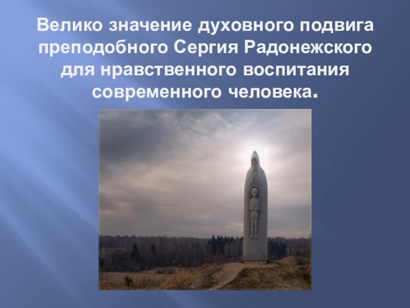 Слайд 3Велико значение духовного подвига преподобного Сергия Радонежского