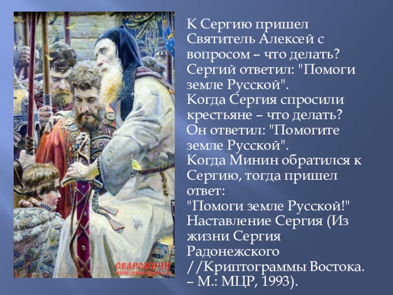 Когда Минин обратился к Сергию, тогда пришел ответ: