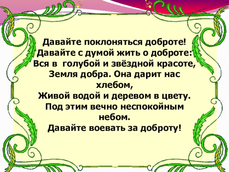 Это сайт презентаций, где можно хранить и обмениваться своими презентациями, докладами, проектами, шаблонами в формате PowerPoint с другими пользователями. Мы помогаем школьникам, студентам, учителям, преподавателям хранить и обмениваться учебными материалами.