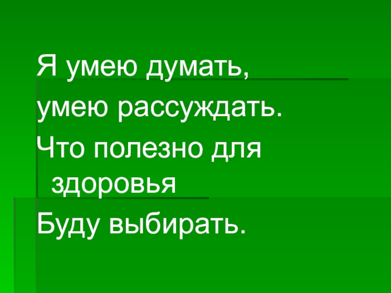 Я умею думать, умею рассуждать.Что полезно для здоровьяБуду выбирать.