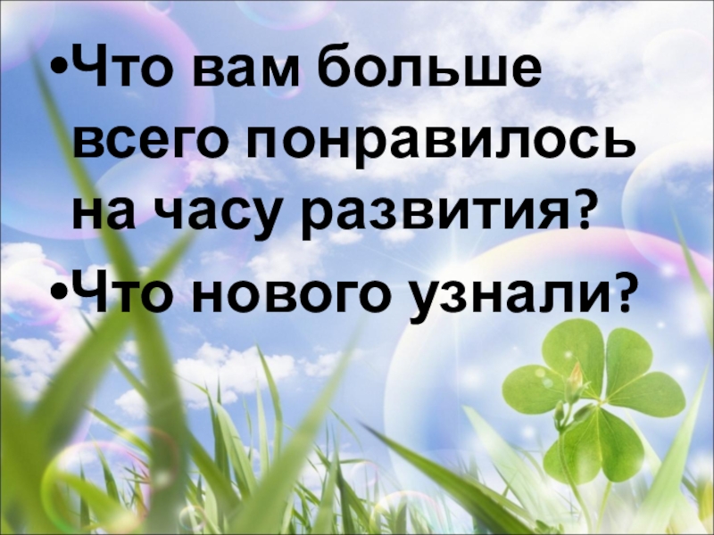 Что вам больше  всего понравилось на часу развития?Что нового узнали?