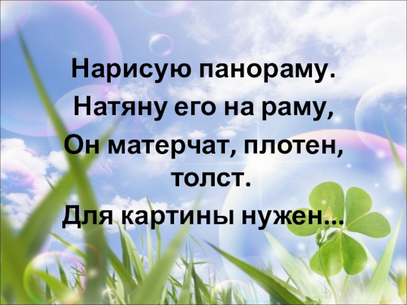 Нарисую панораму.Натяну его на раму,Он матерчат, плотен, толст.Для картины нужен...