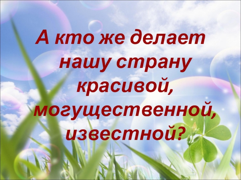 А кто же делает нашу страну красивой, могущественной, известной?