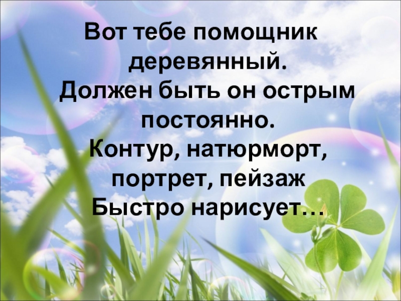 Вот тебе помощник деревянный. Должен быть он острым постоянно. Контур, натюрморт, портрет, пейзаж Быстро нарисует…