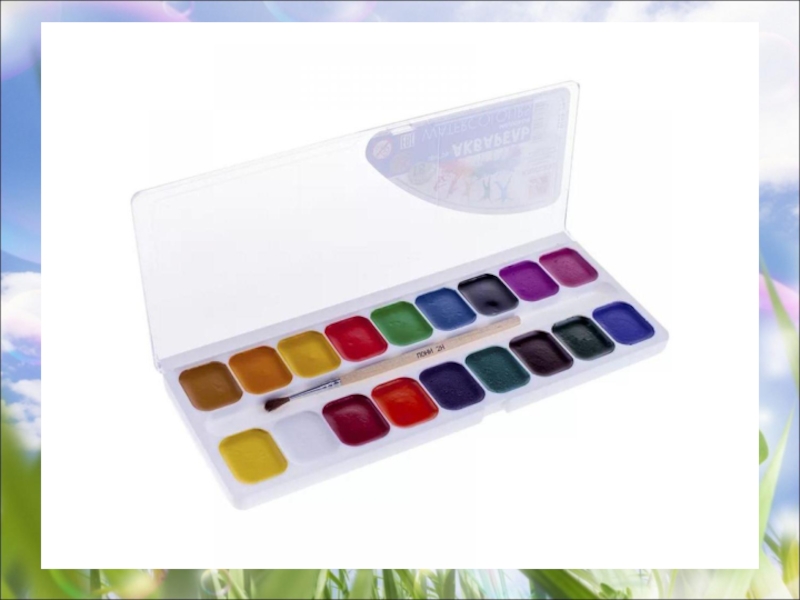 Акварель, палитра, кисть и бумаги плотный