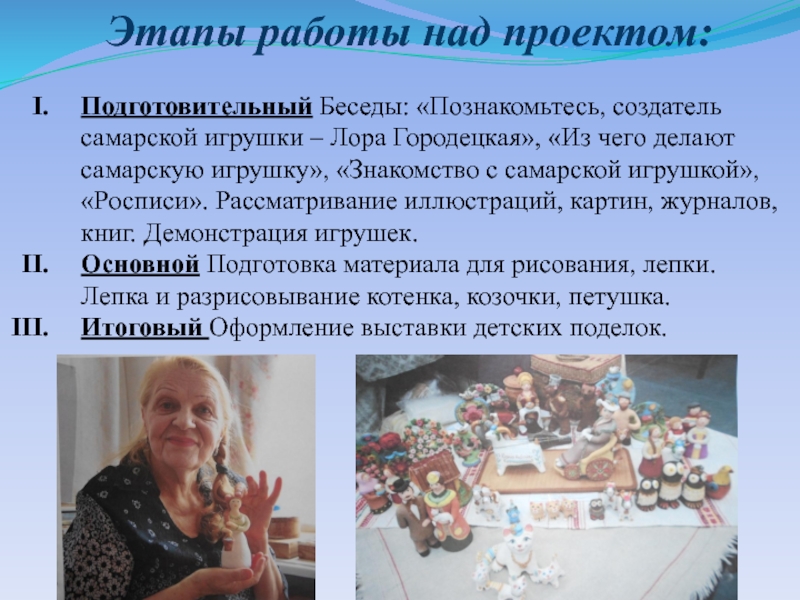 Подготовительный Беседы: «Познакомьтесь, создатель самарской игрушки – Лора