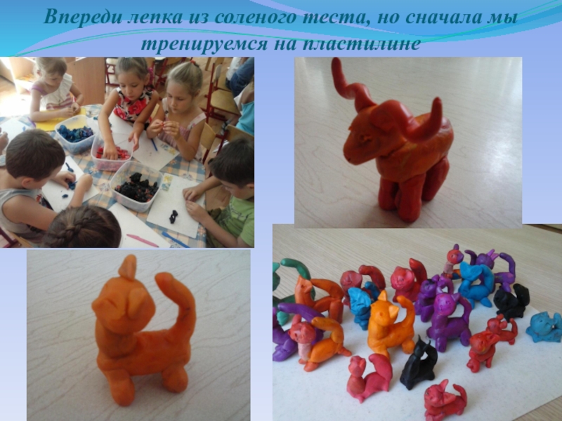 Слайд 26Впереди лепка из соленого теста, но сначала мы тренируемся на пластилине