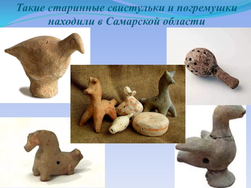 Слайд 13Такие старинные свистульки и погремушки находили в Самарской области