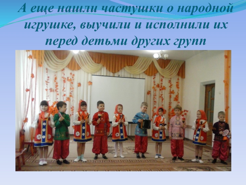 Слайд 16А еще нашли частушки о народной игрушке, выучили и исполнили их