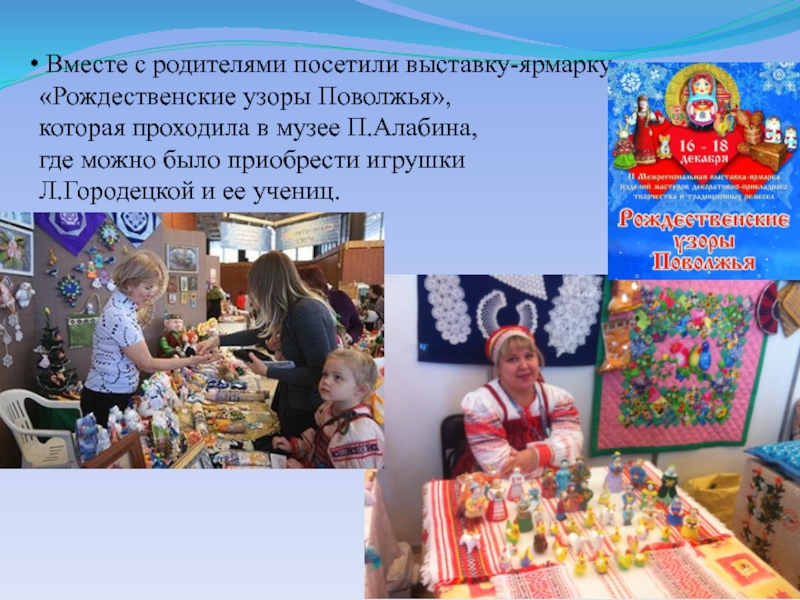 Слайд 30 Вместе с родителями посетили выставку-ярмарку «Рождественские узоры Поволжья»,