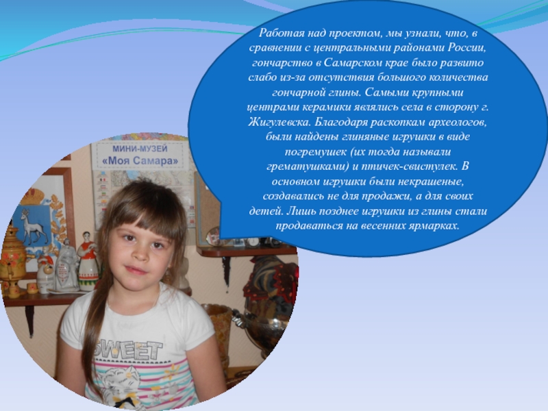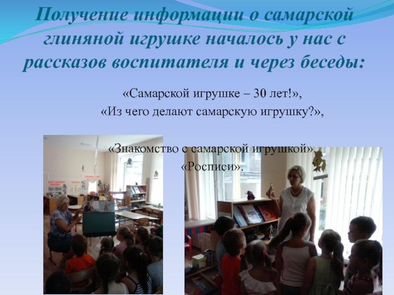 Слайд 10Получение информации о самарской глиняной игрушке началось у нас с рассказов