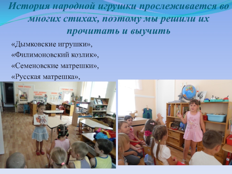 Слайд 14История народной игрушки прослеживается во многих стихах, поэтому мы решили их