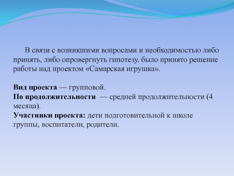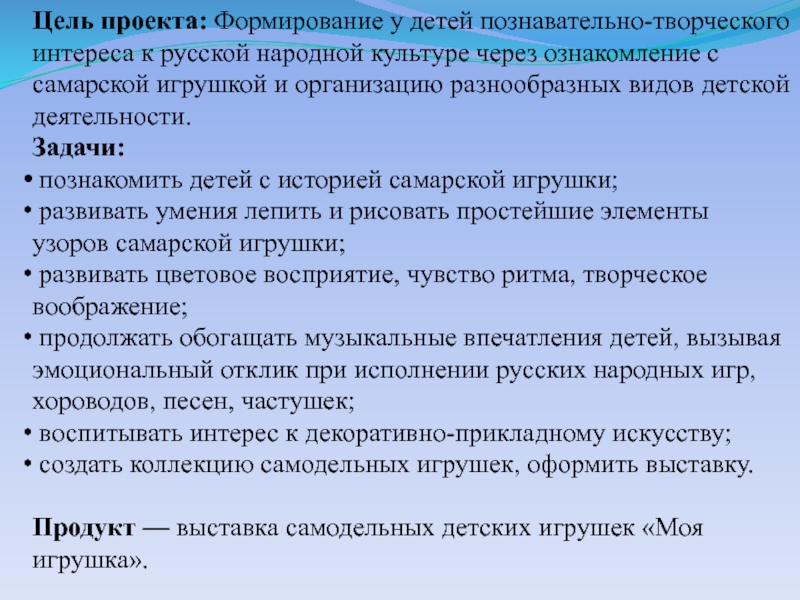 гипотезу, было принято решение работы над проектом «Самарская игрушка».