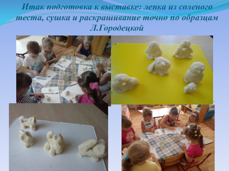 Слайд 27Итак подготовка к выставке: лепка из соленого теста, сушка и раскрашивание