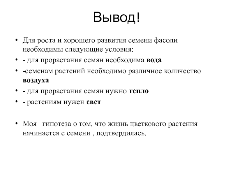Для роста и хорошего развития семени фасоли необходимы следующие условия: