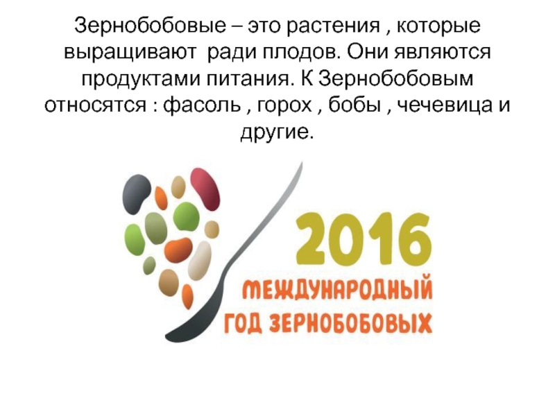 Слайд 2Зернобобовые – это растения , которые выращивают ради плодов. Они являются