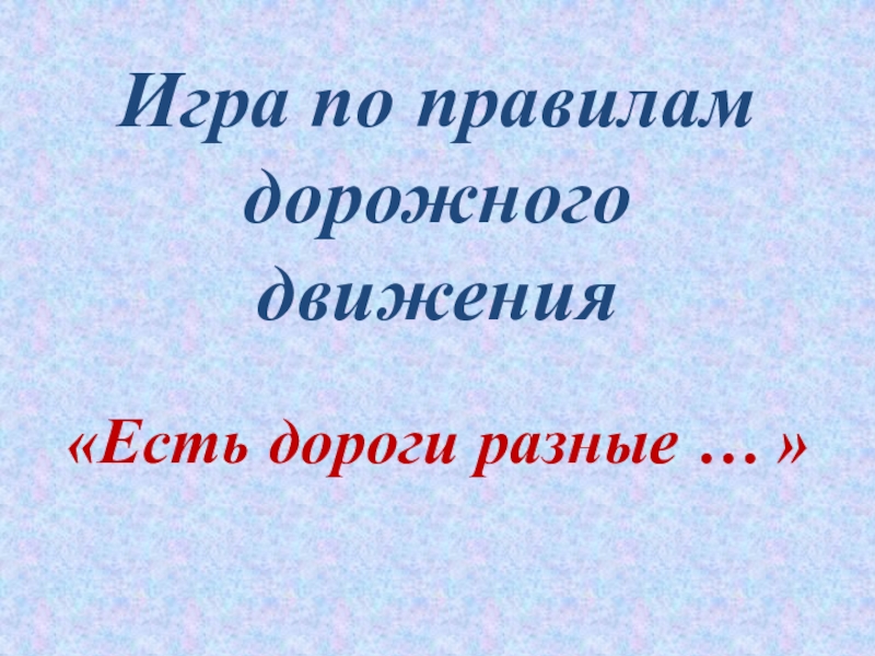 Игра по правилам дорожного движения«Есть дороги разные … »