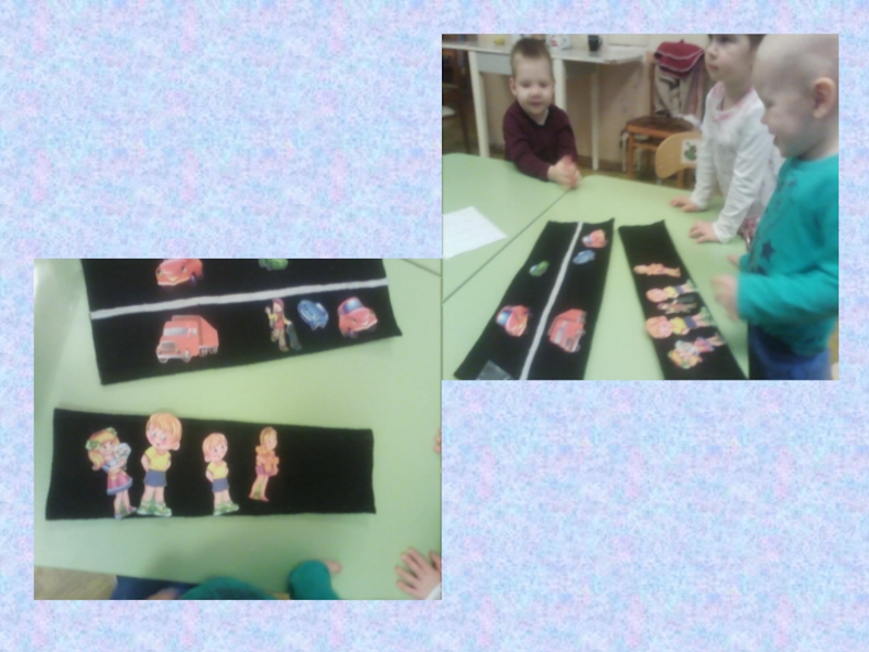 В: Давайте вместе с вами расставим пешеходов и машины всех на свои дороги.